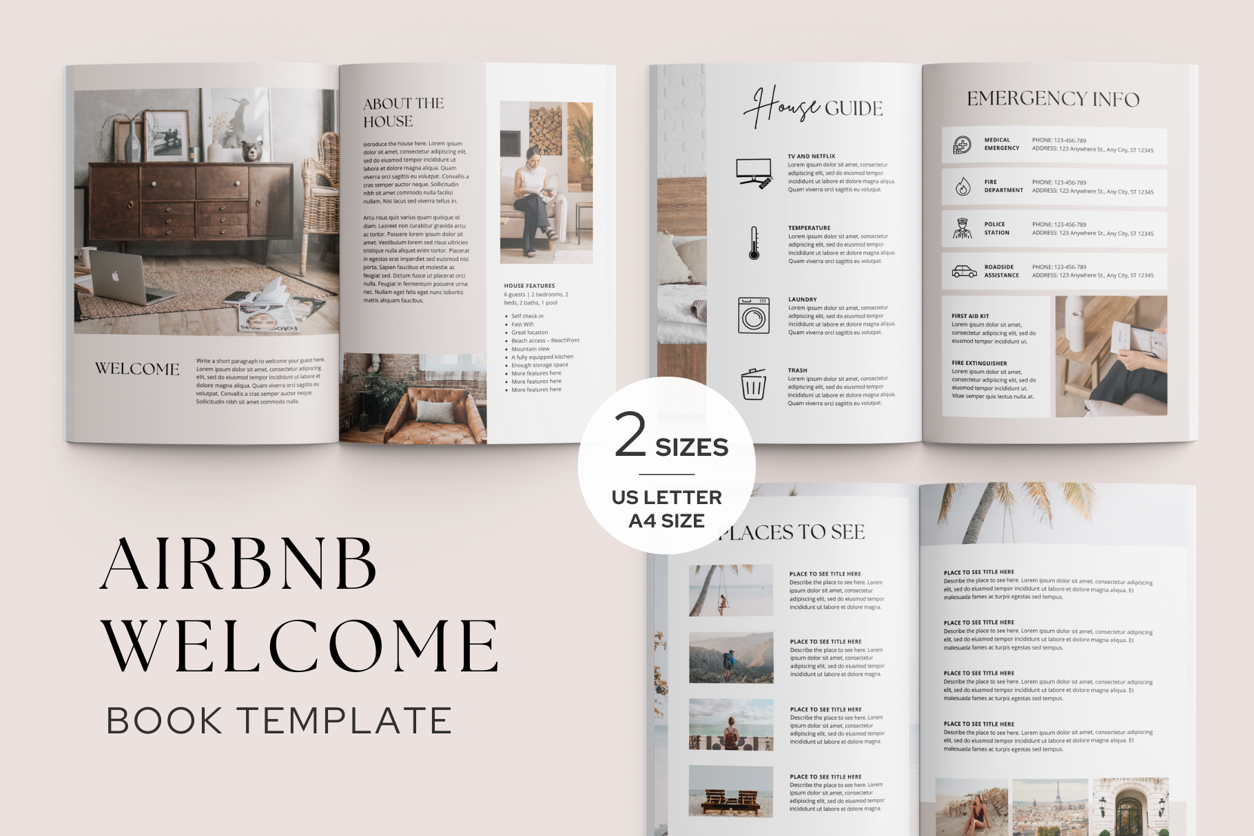 Custom Guest Welcome Book Template for Vacation Rental Airbnb House