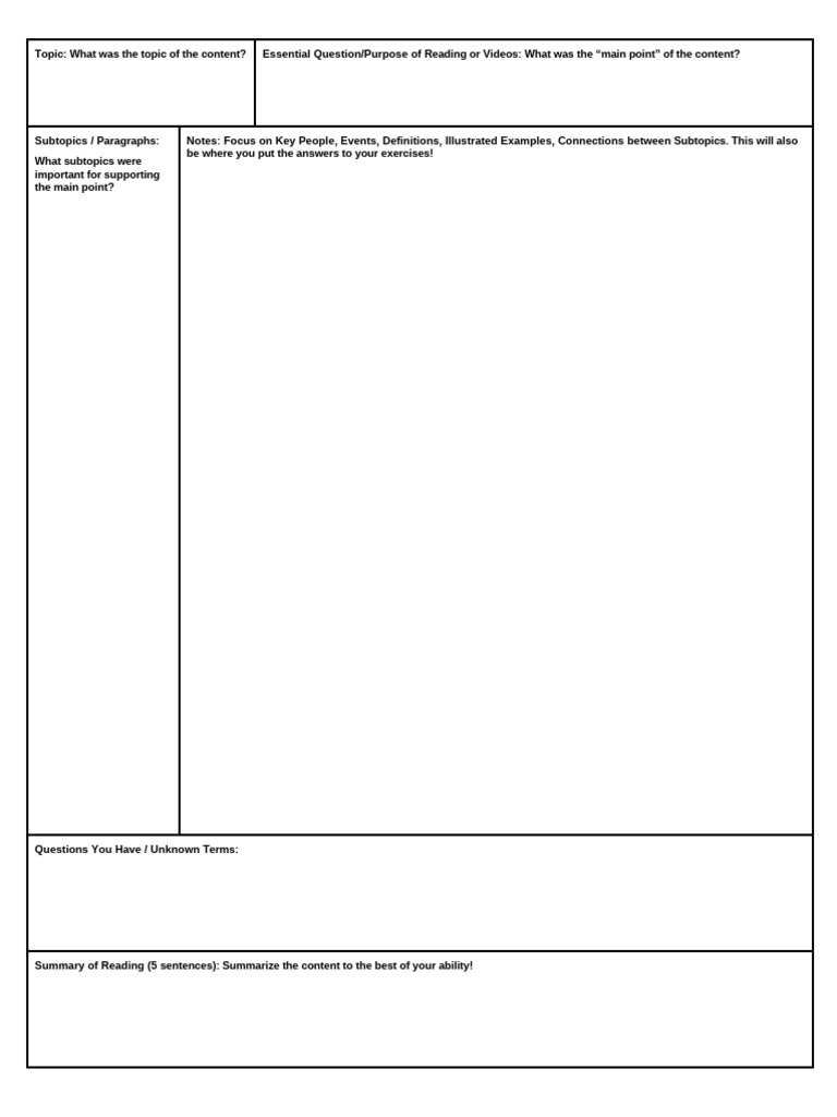 Guided Reading Notes Template PDF