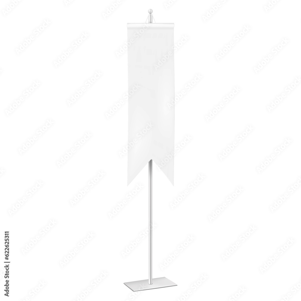 Blank Fabric Flag on Metal Pole Stand Vector Mock up Hanging White