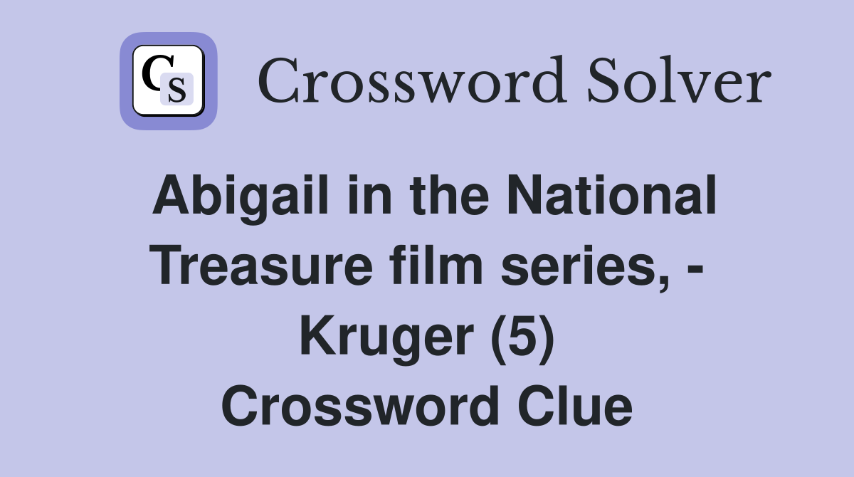 Abigail in the National Treasure film series Kruger (5) Crossword