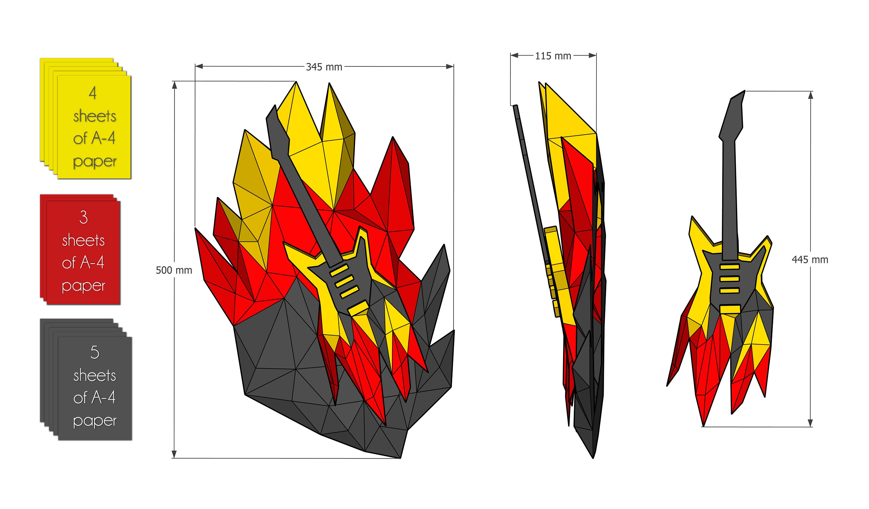 Papercraft 3D Guitar Template SVG Template Paper Guitar Digital PDF