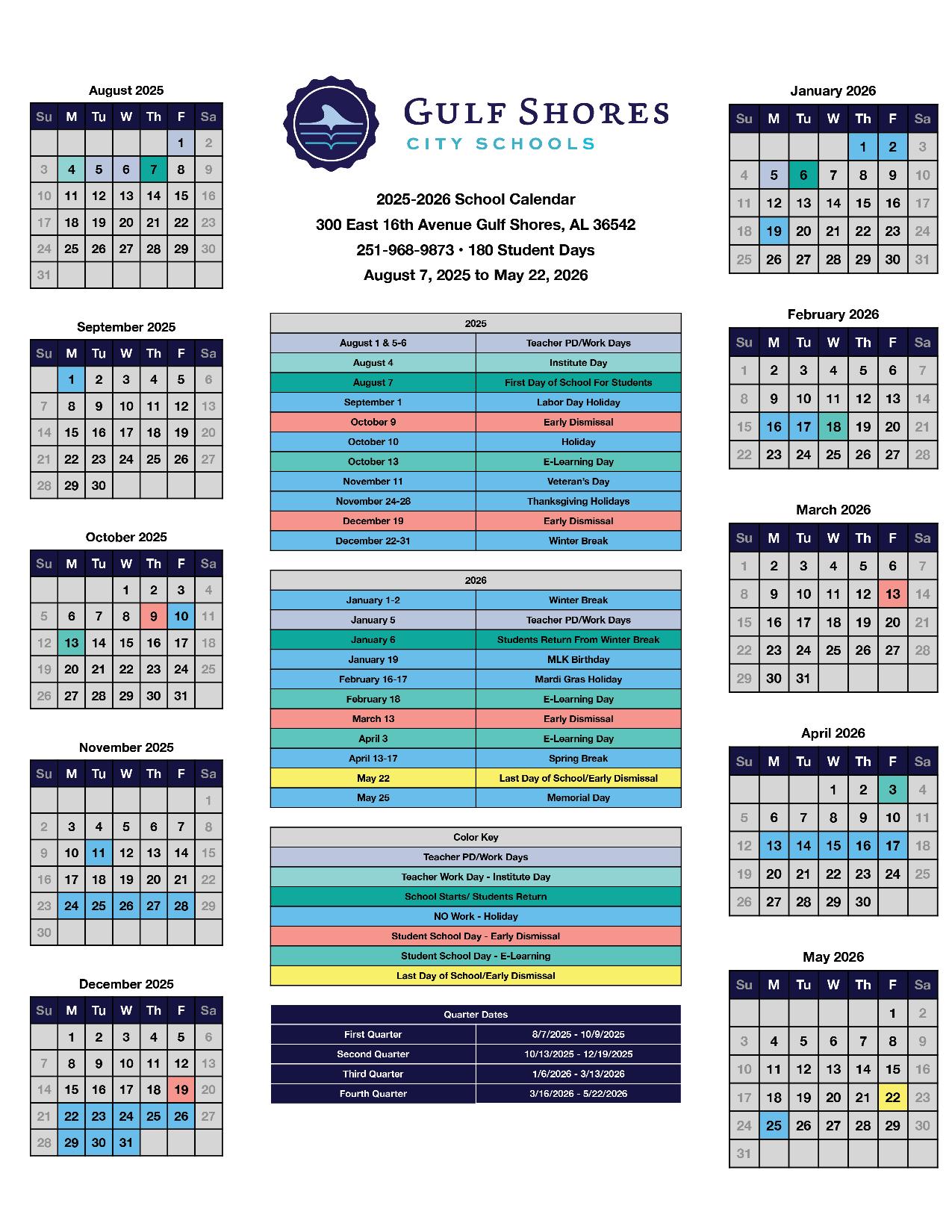 Gulf Shores City Schools Calendar 2025 2026 Holidays