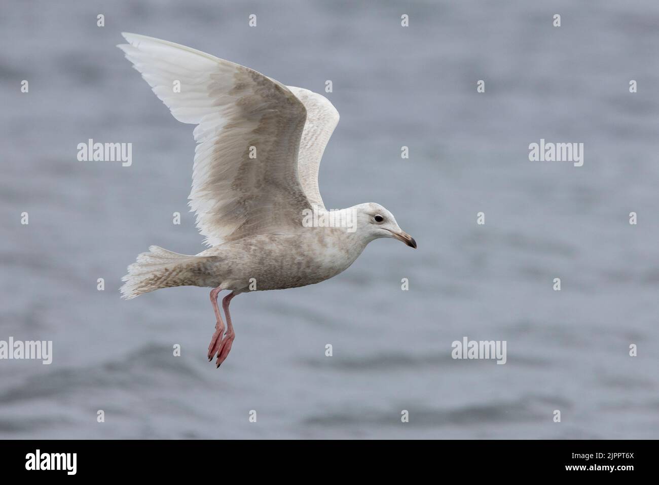 Iceland Gull (Larus glaucoides) side view of a juvenile in flight