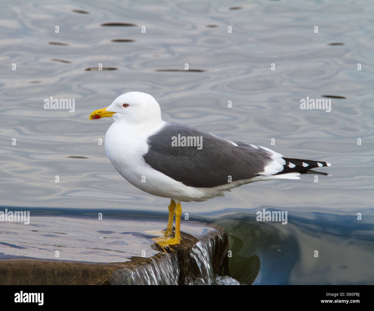 Lesser Black Backed Gull stood on weir Stock Photo Alamy