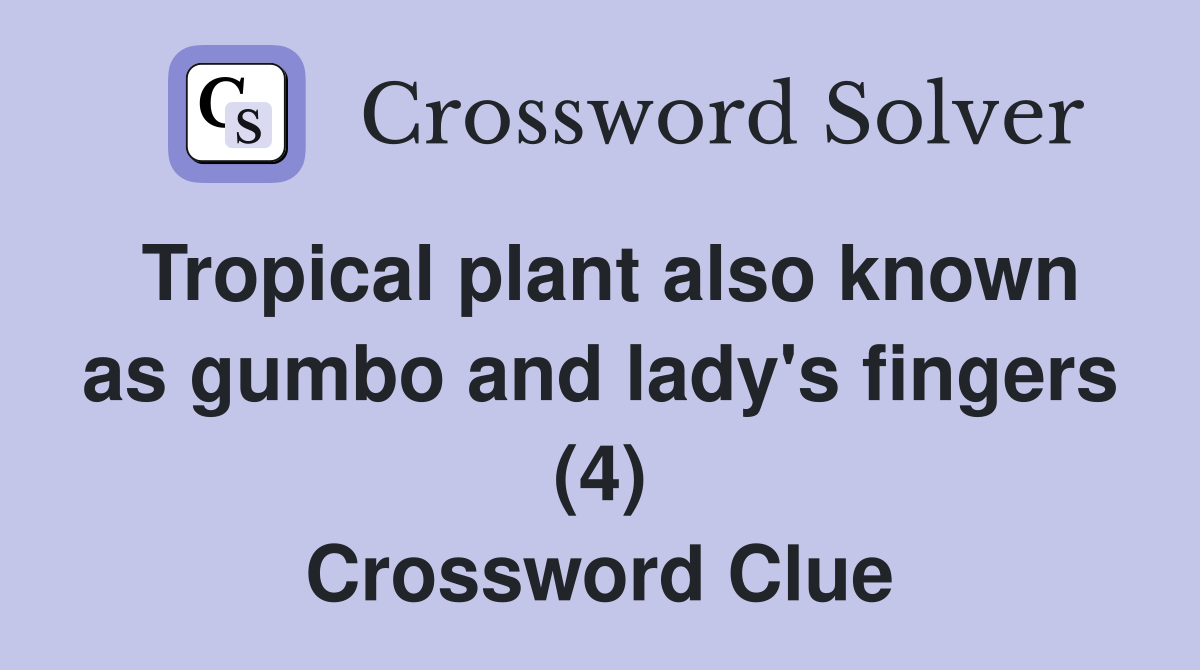 Tropical plant also known as gumbo and lady s fingers (4) Crossword