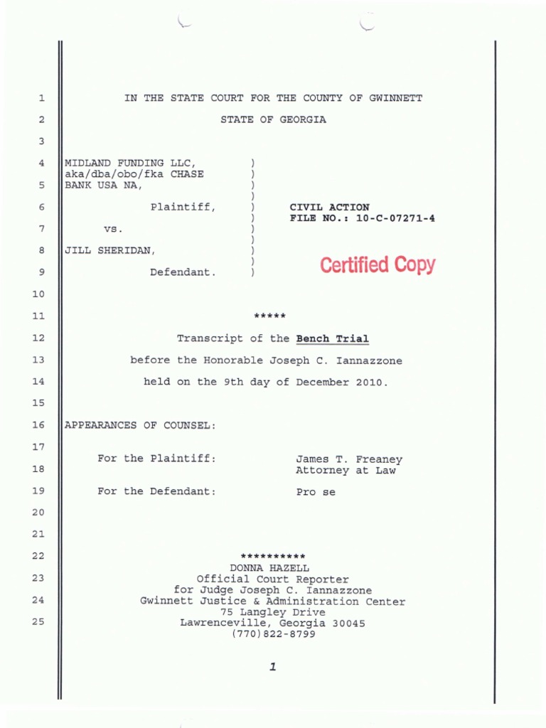 12 09 2010 Bench Trial Transcript Judgment For Defendant Midland V