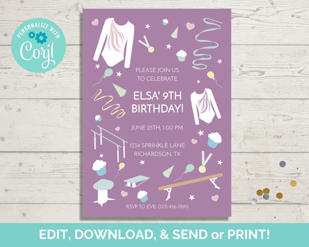 Gymnastics Birthday Invitation EDITABLE Gymnastics Party Invitation