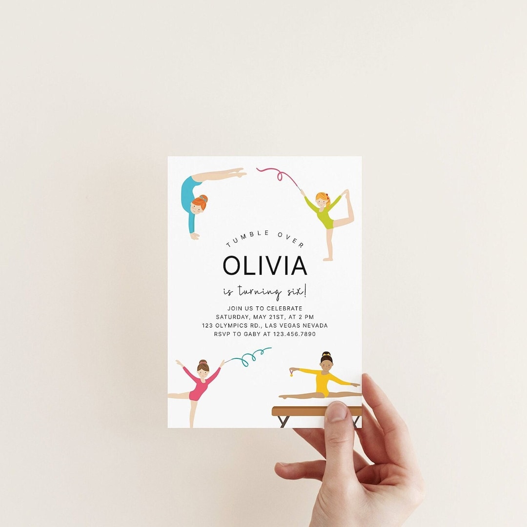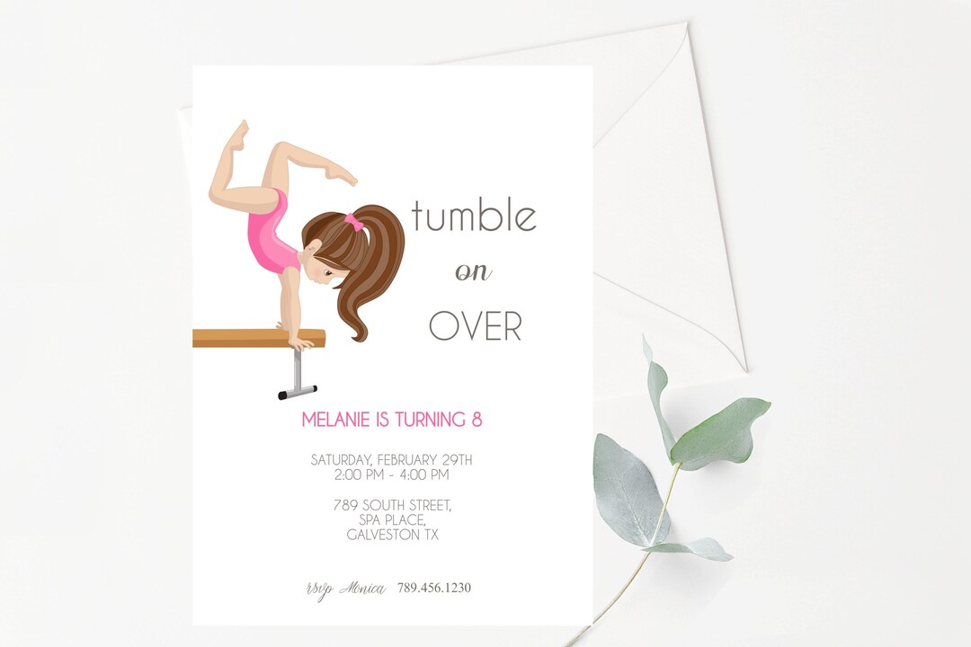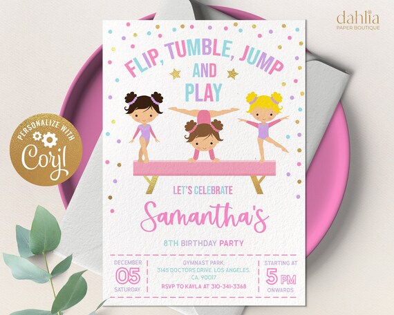 Gymnastics Birthday Party Invitation Tumbling Party Edit on Etsy