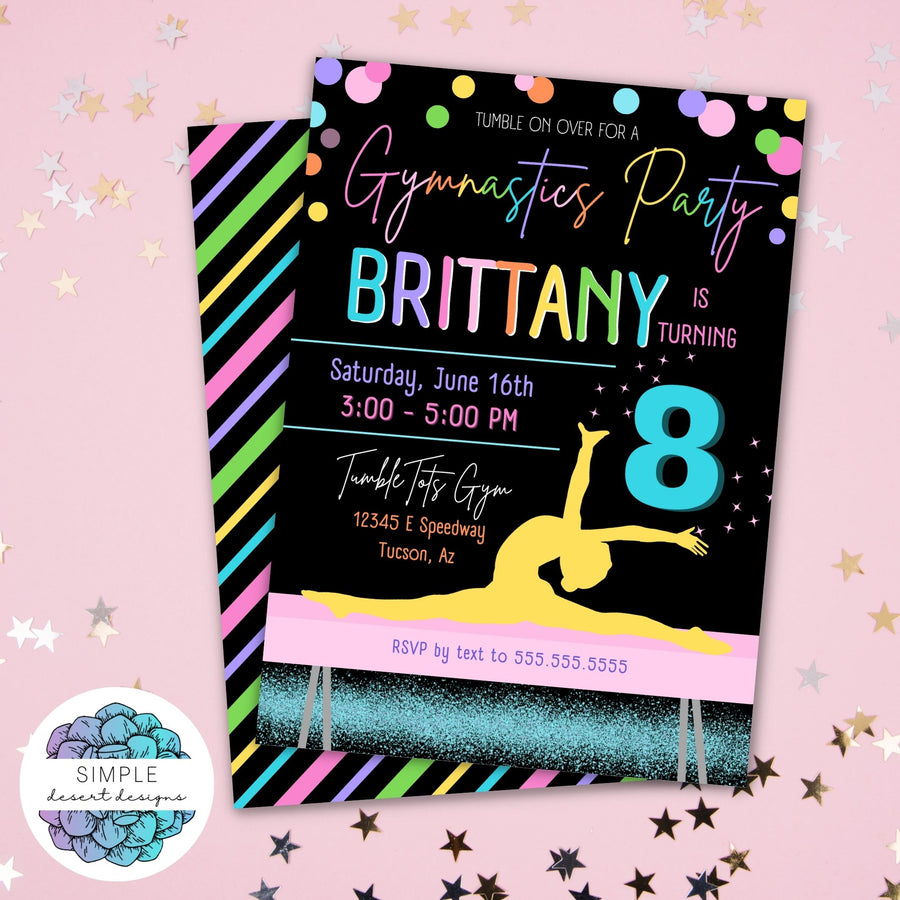 Gymnastics Birthday Party Invitation Simple Desert Designs