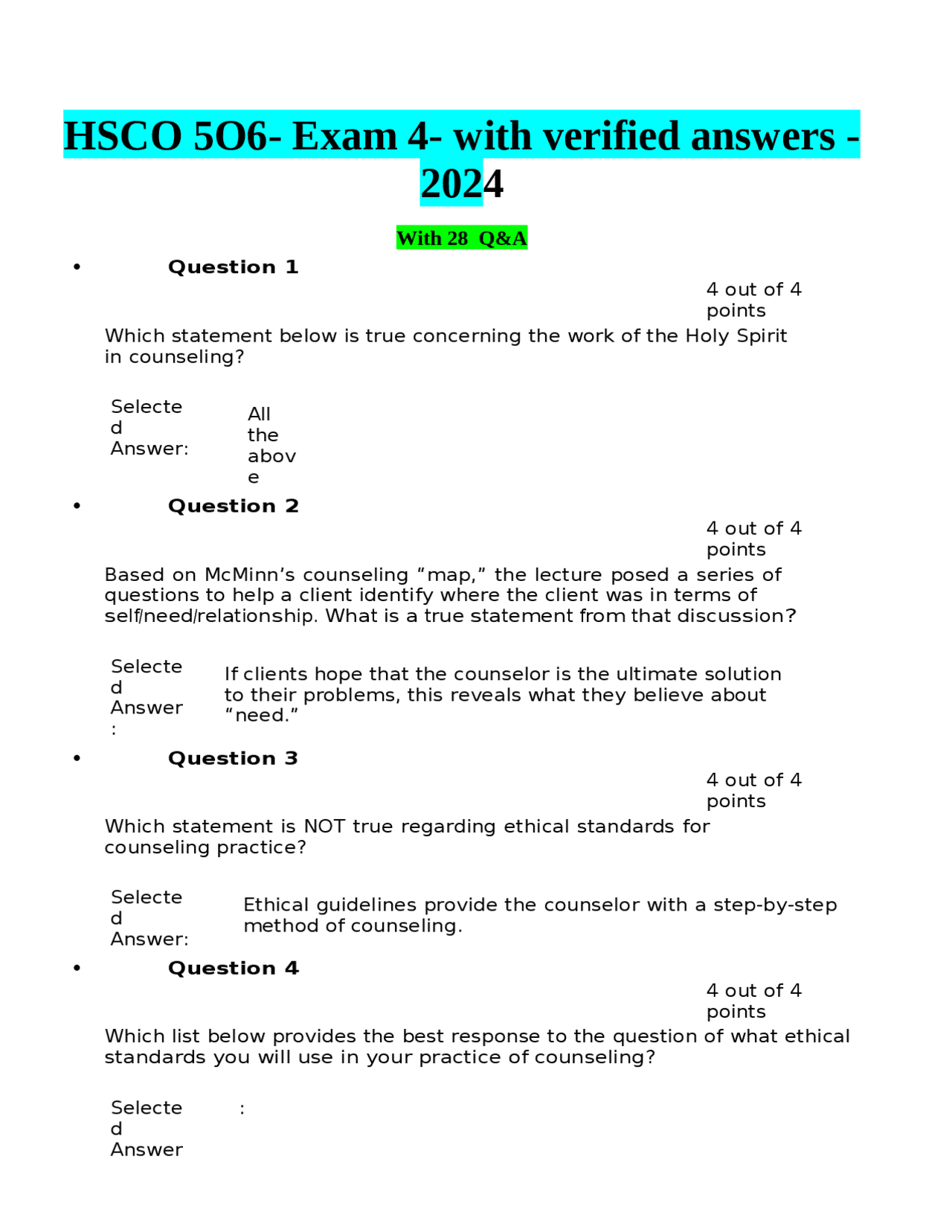 HSCO 5O6 Exam 4 with verified answers docx Exams Advanced