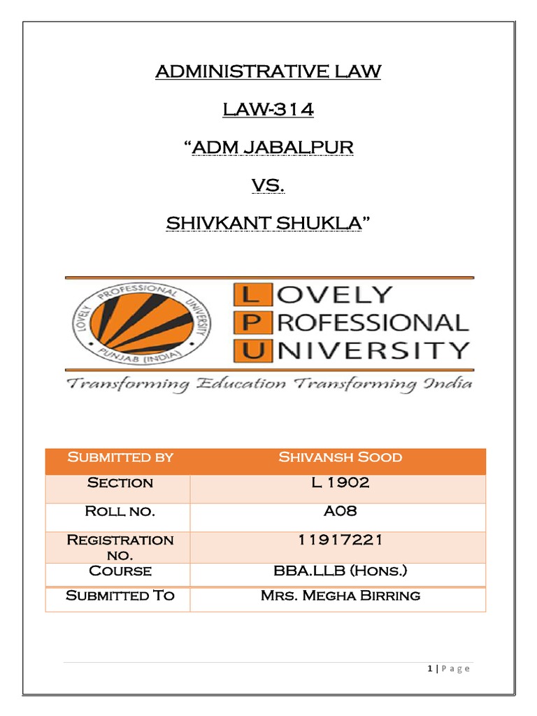 Adm Jabalpur Case PDF Habeas Corpus Supreme Court Of India