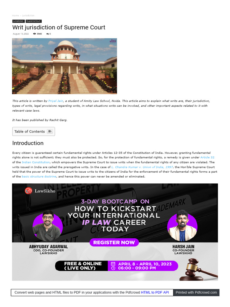 Blog Ipleaders in Writ Jurisdiction of Supreme Court PDF Writ