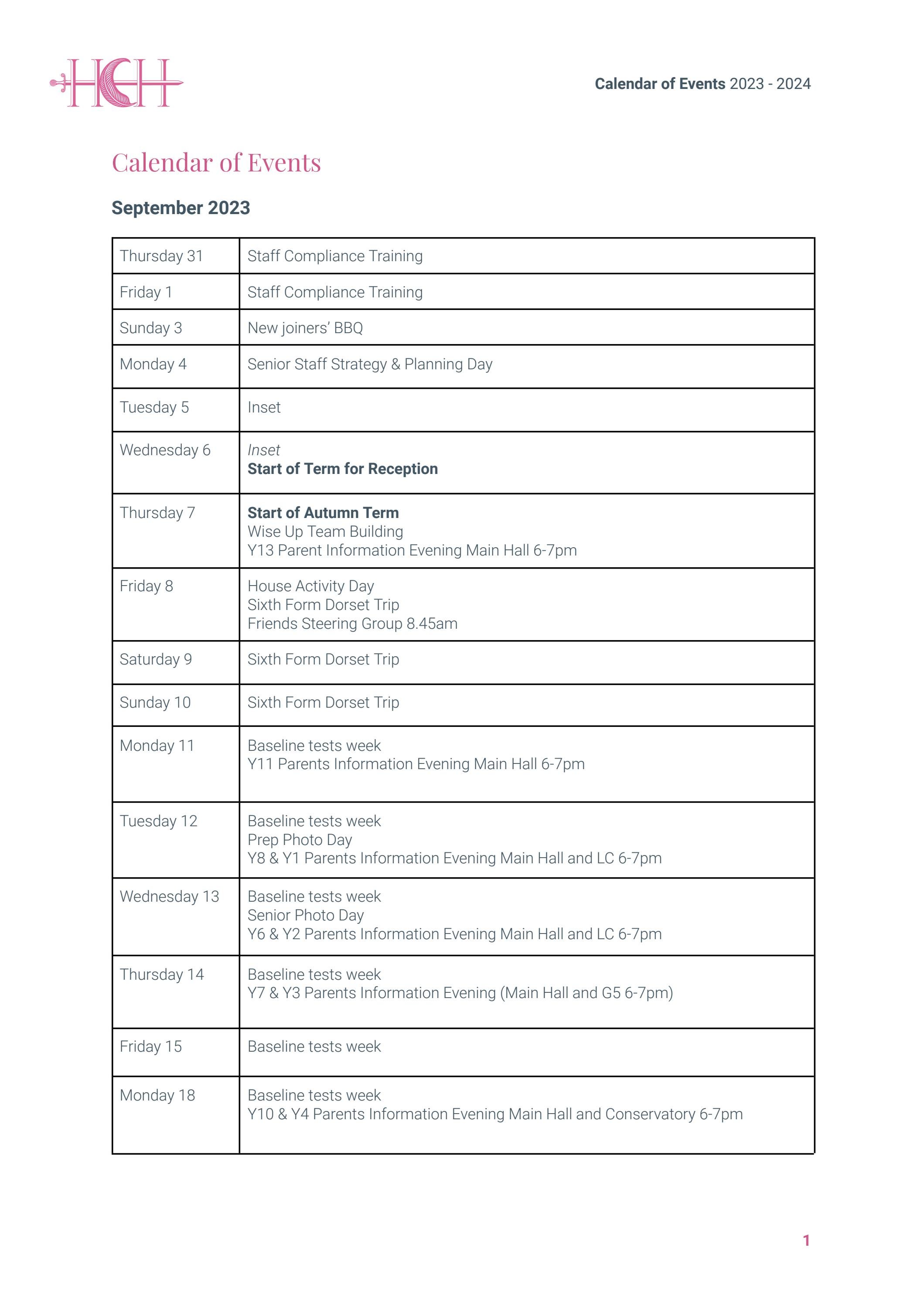 HCH Calendar of Events 2023 2024 by Dukes Education Issuu