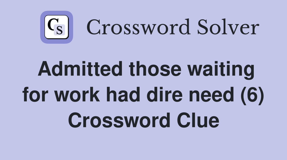 Admitted those waiting for work had dire need (6) Crossword Clue