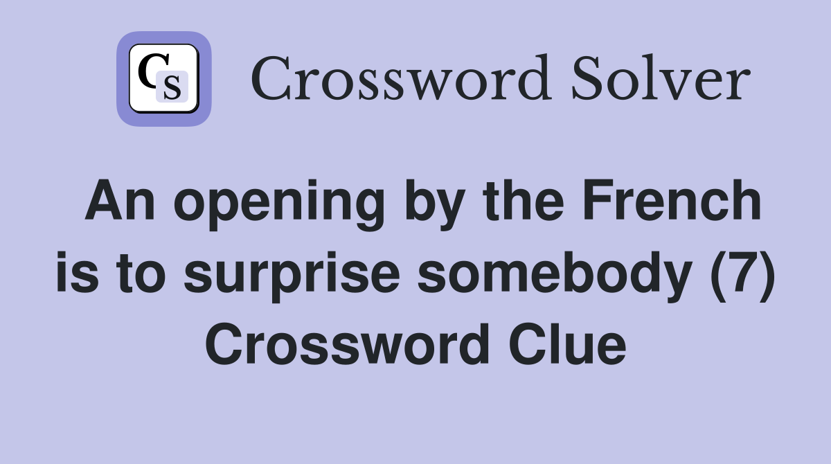 An opening by the French is to surprise somebody (7) Crossword Clue
