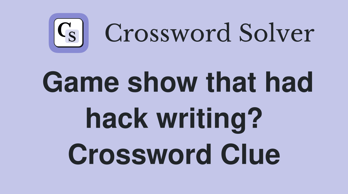 Game show that had hack writing? Crossword Clue Answers Crossword