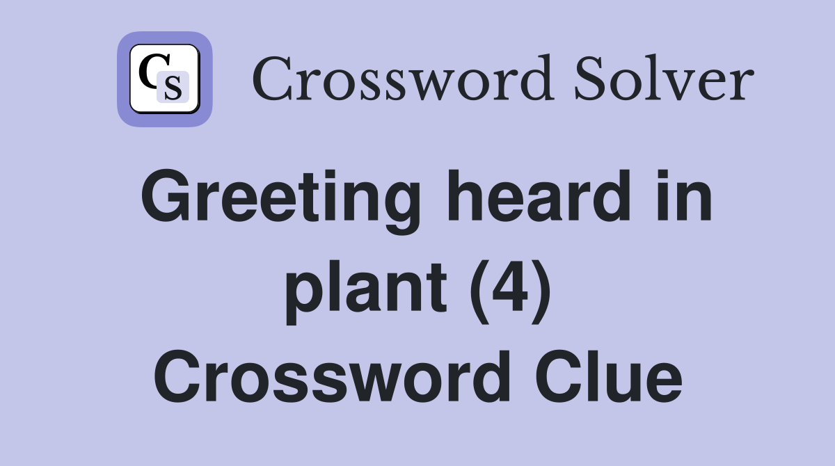 Greeting heard in plant (4) Crossword Clue Answers Crossword Solver
