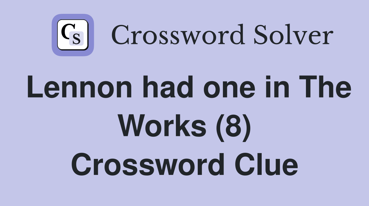 Lennon had one in The Works (8) Crossword Clue Answers Crossword Solver