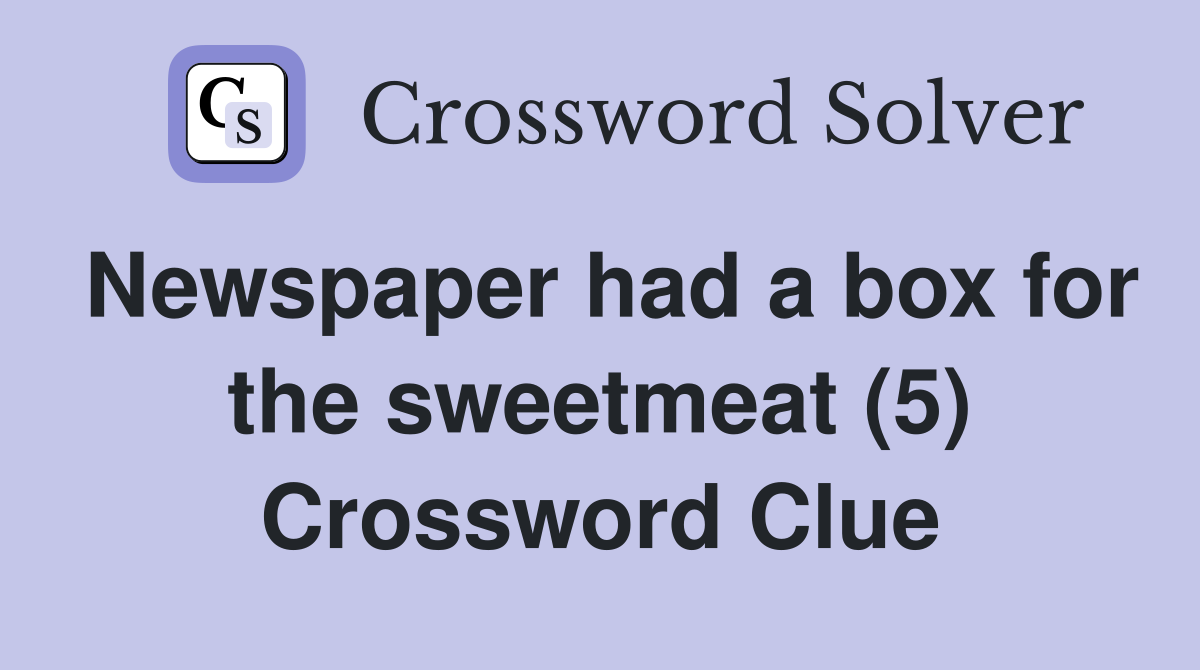 Newspaper had a box for the sweetmeat (5) Crossword Clue Answers