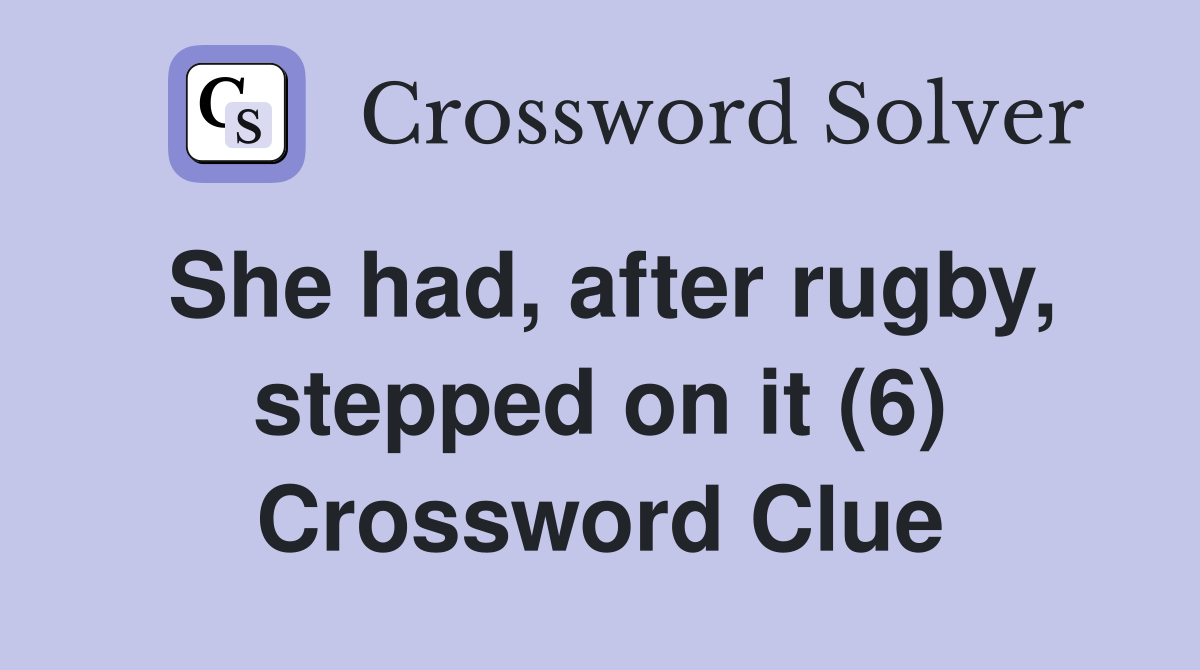 She had after rugby stepped on it (6) Crossword Clue Answers