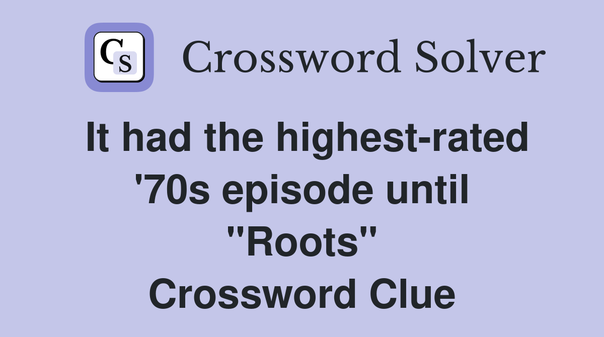 It had the highest rated #39 70s episode until #39 #39 Roots #39 #39 Crossword Clue