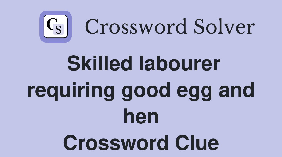 Skilled labourer requiring good egg and hen Crossword Clue Answers