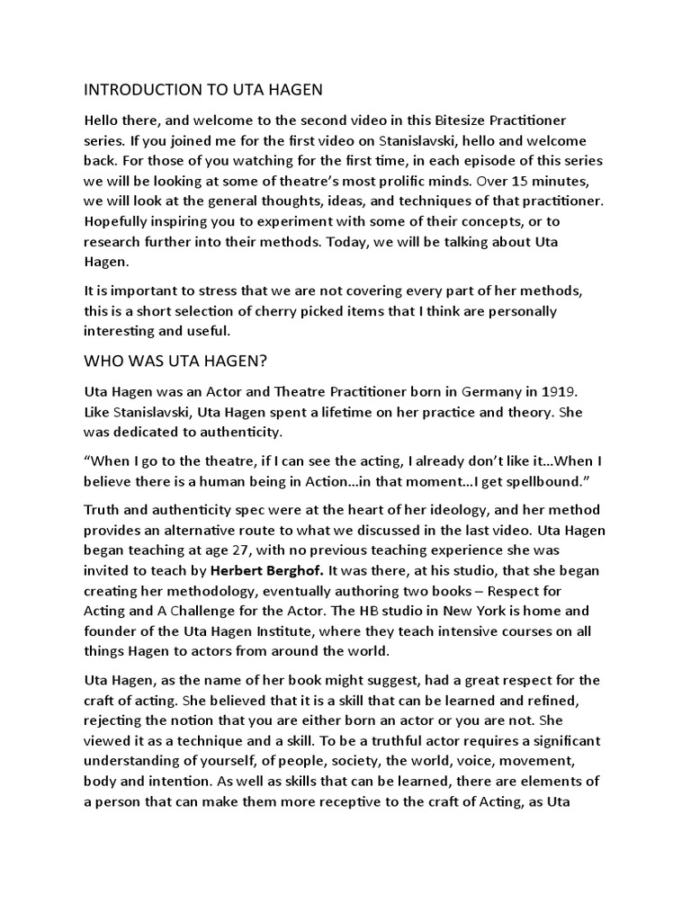 Uta Hagen Acting Techniques Guide PDF Experience Senses