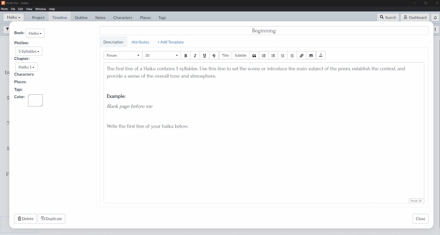 Haiku Template in Plottr: Create Seasonal Stanzas Plottr