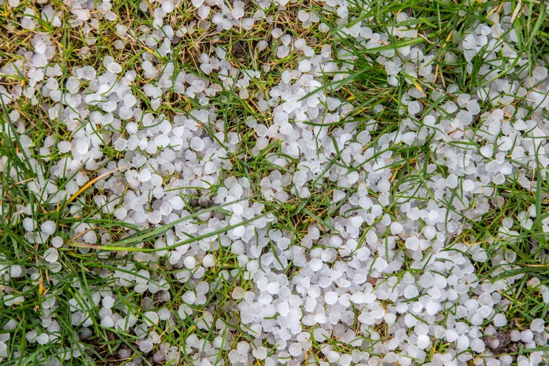 Large Hail in the Green Grass after a Thunderstorm Stock Image Image