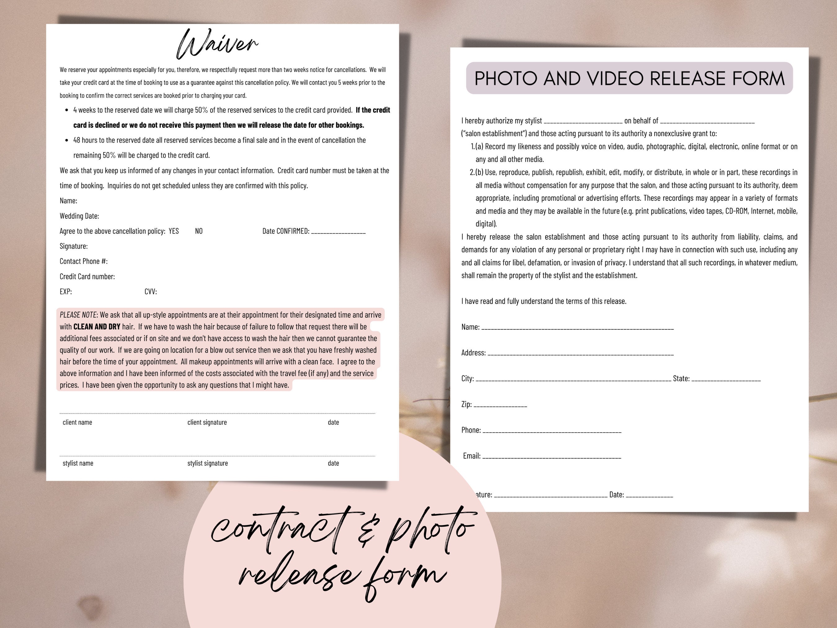 Editable Bridal Hair Contract Template Bridal Hairstylist Etsy