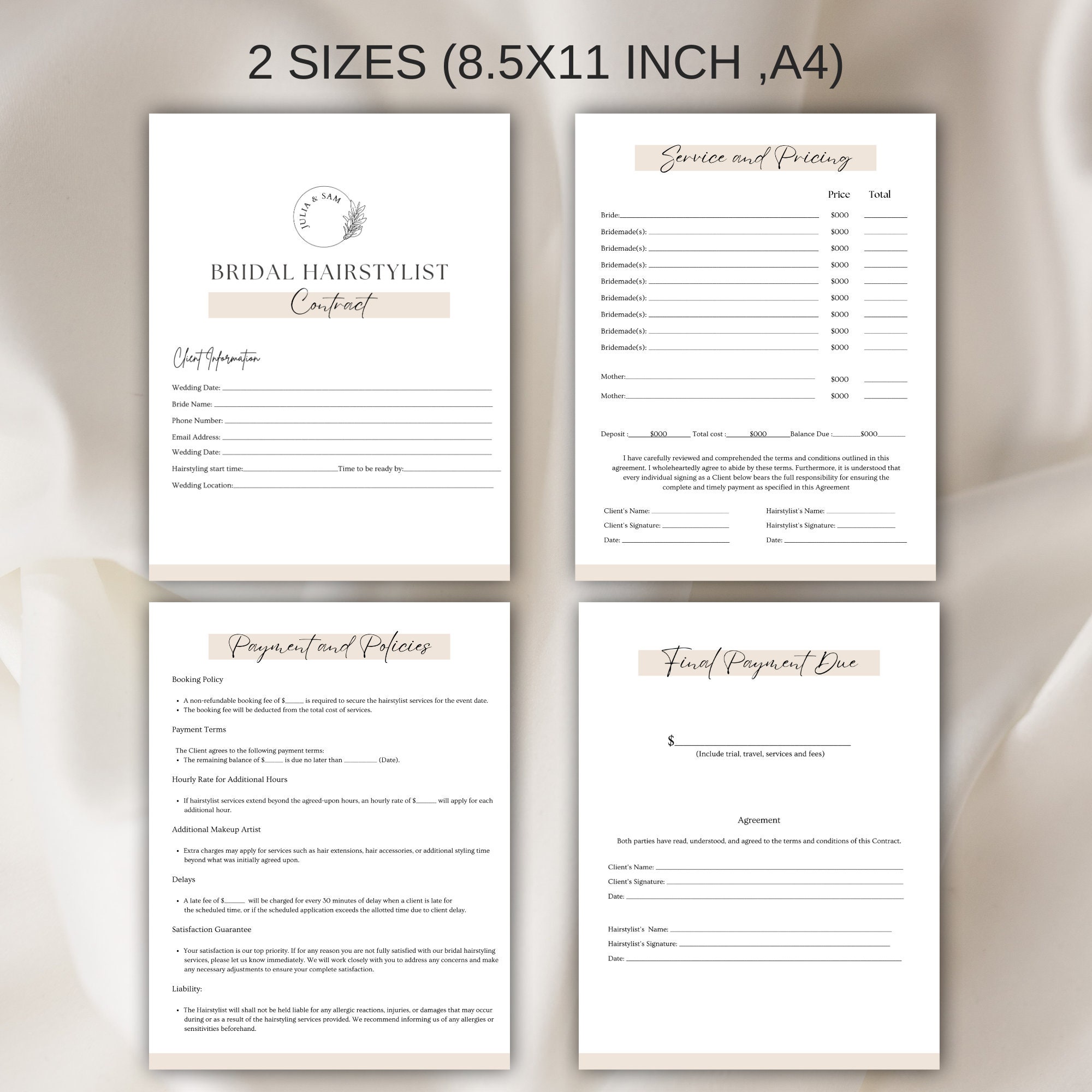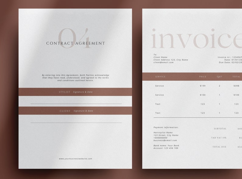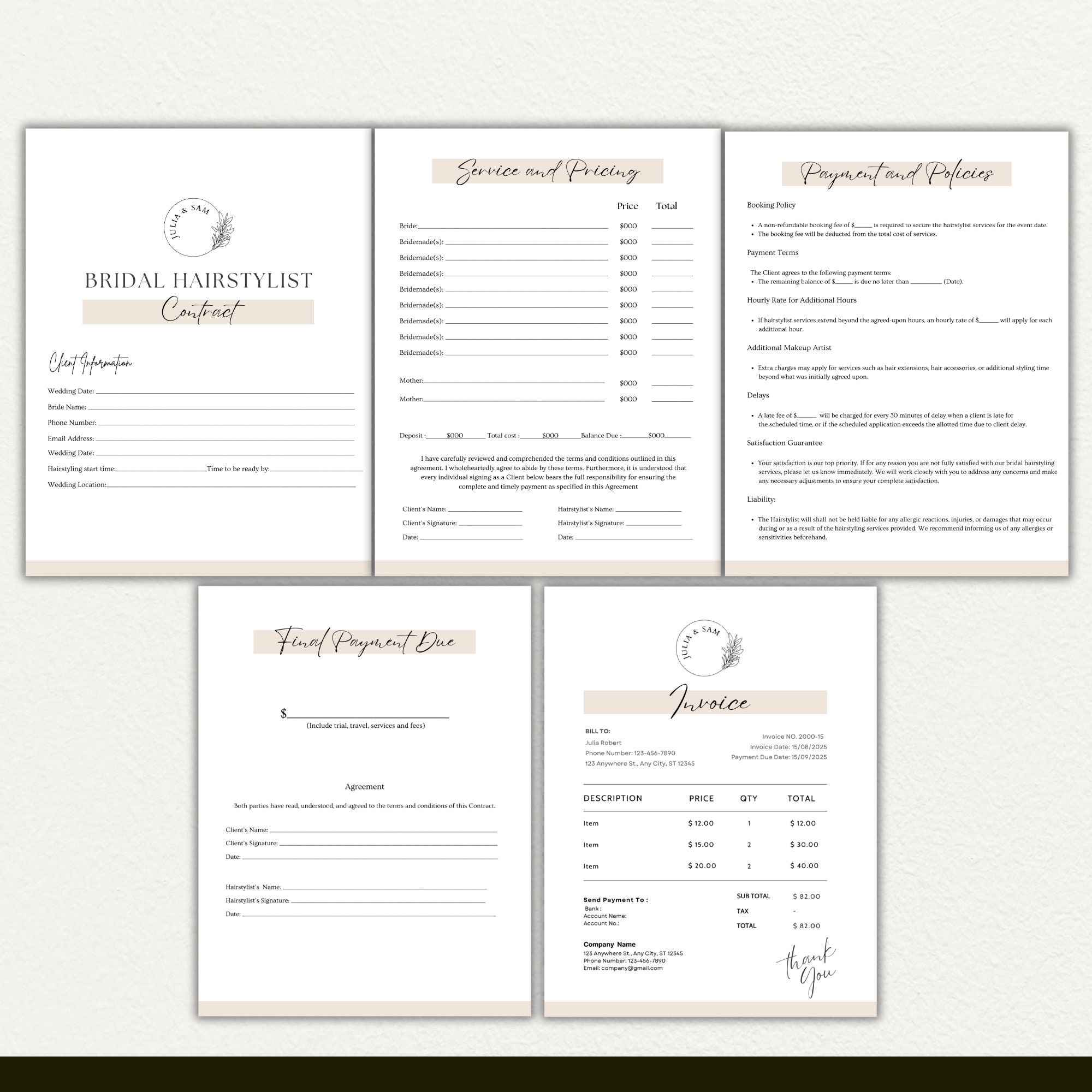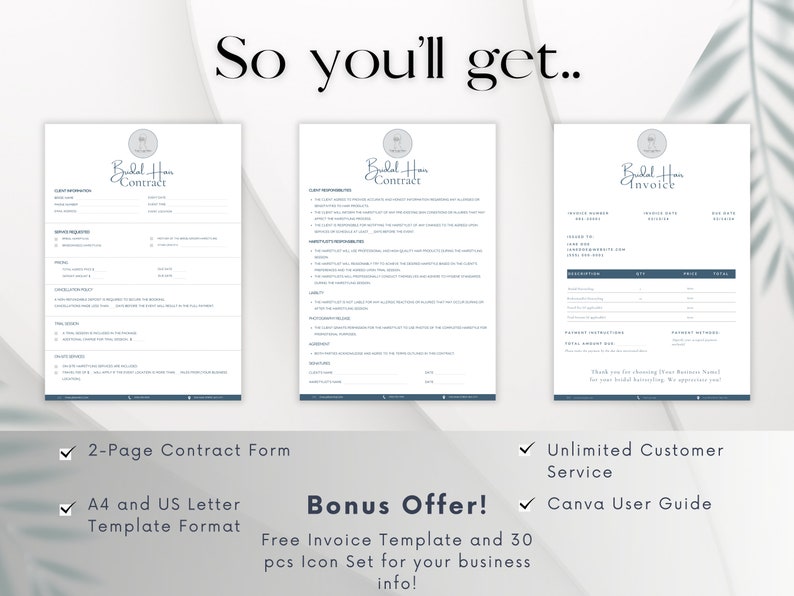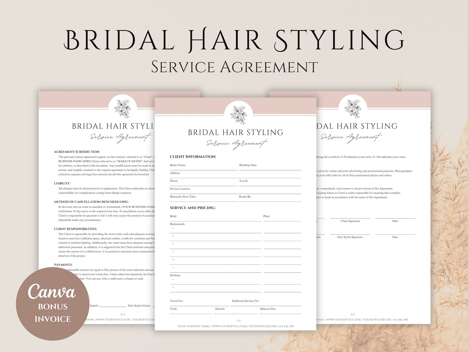 Bridal Hair Contract Template With Invoice Editable Hairstyling