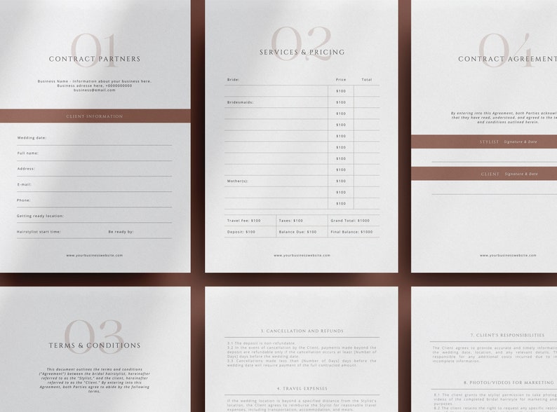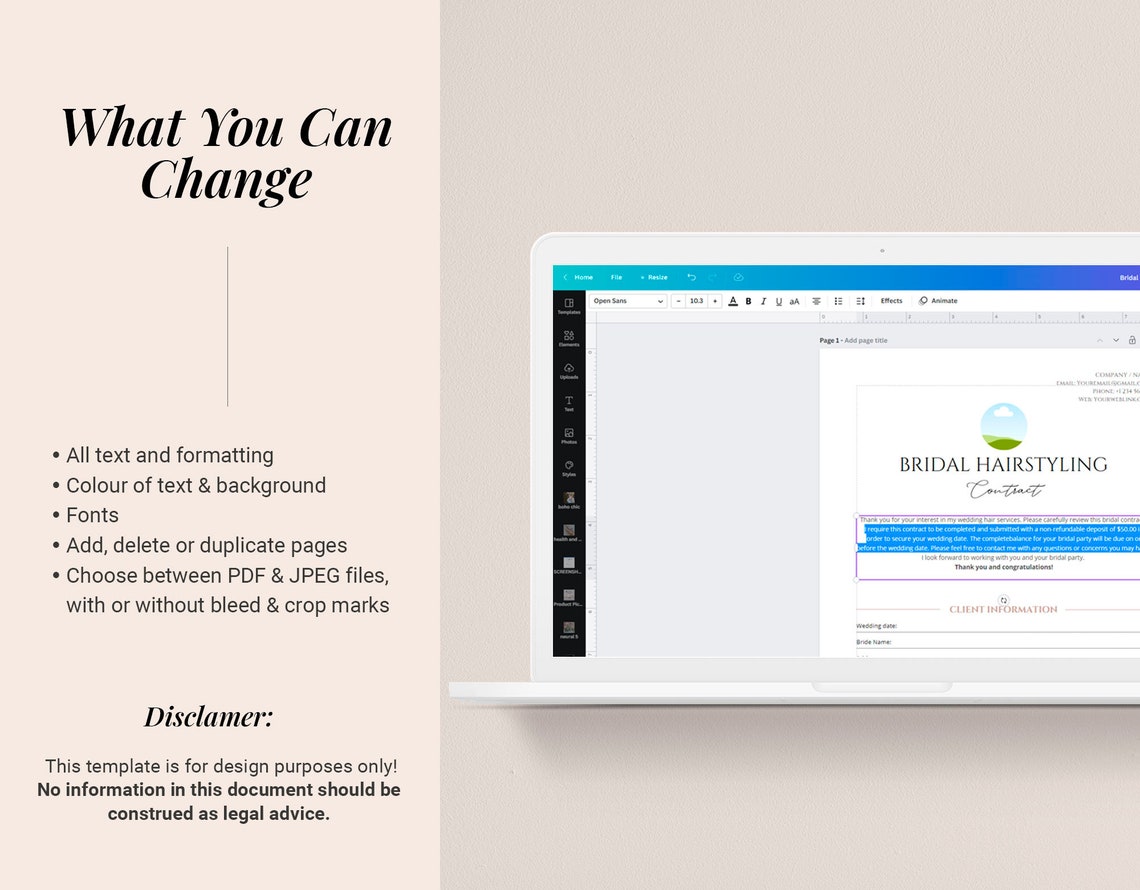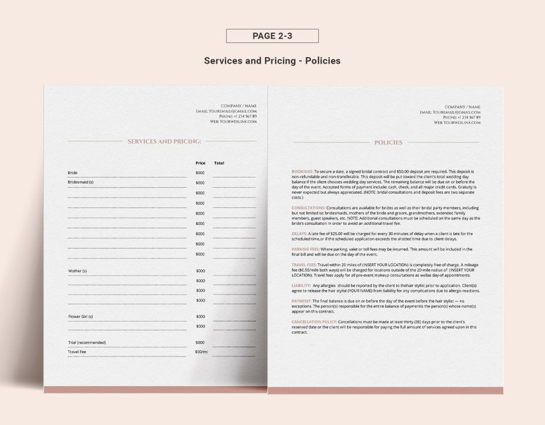 Bridal Canva Hair Contract Template Freelance Etsy