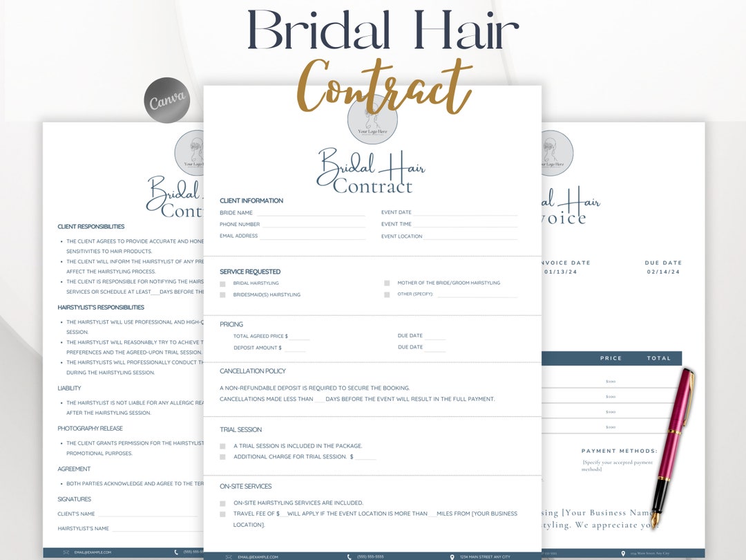 Bridal Hair Contract Template Canva Template Editable Etsy