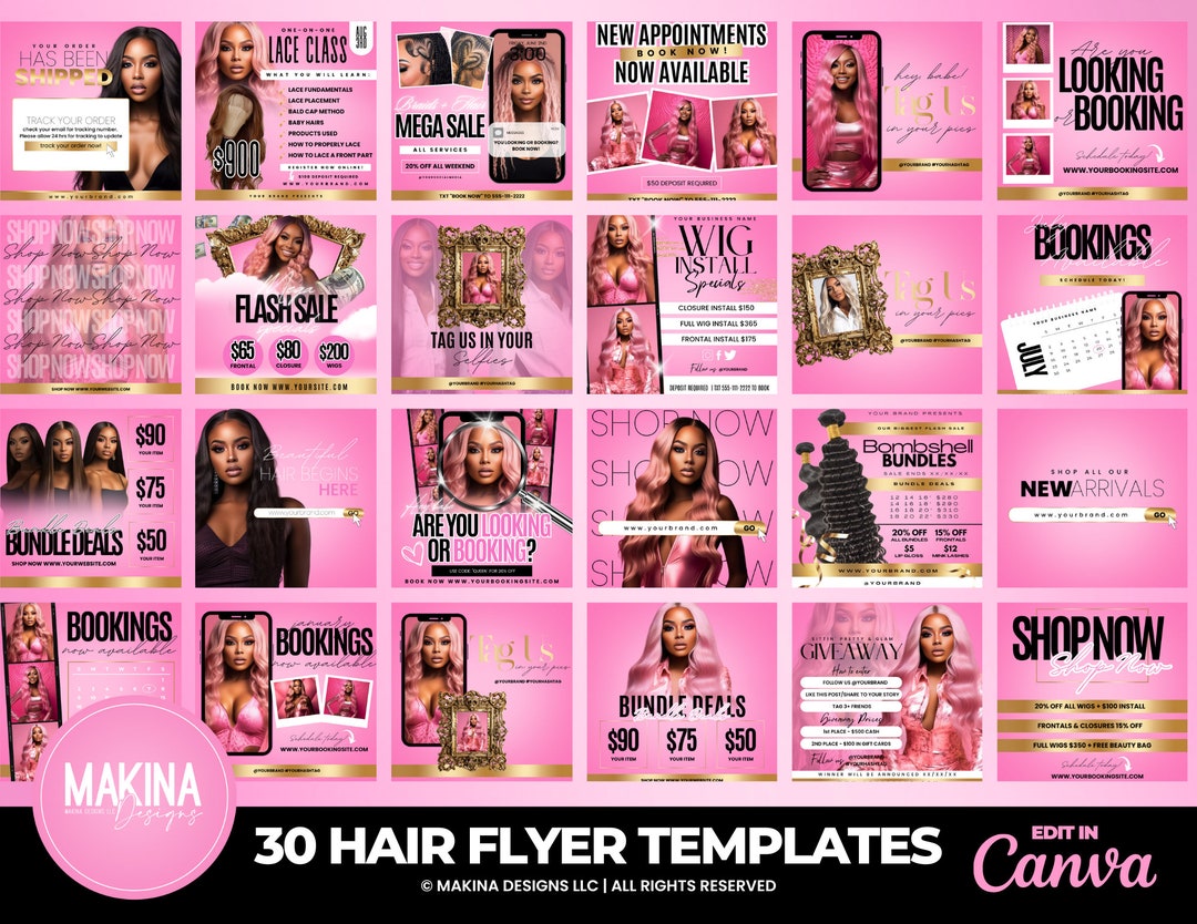 DIY Hair Flyer Template Bundle Canva Template Social Media Bundle