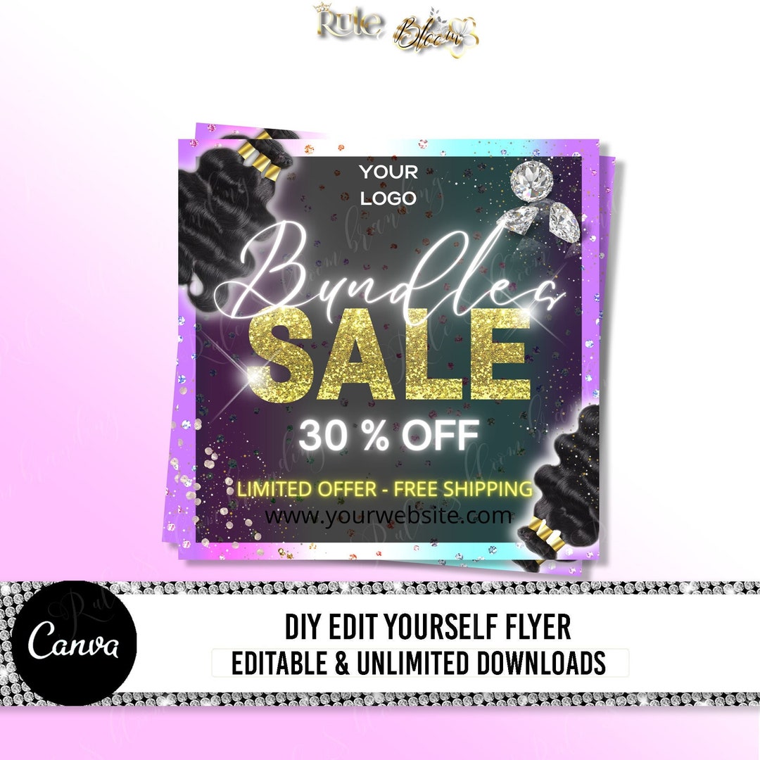 Flash Sale Hair Flyer Template Hair Sale Canva Flyer Editable Hair