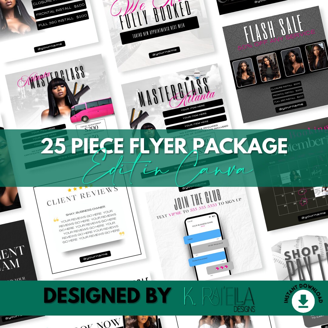 Hair Flyer Template Set Wig Install Flyers Braids Flyers Hair Braids