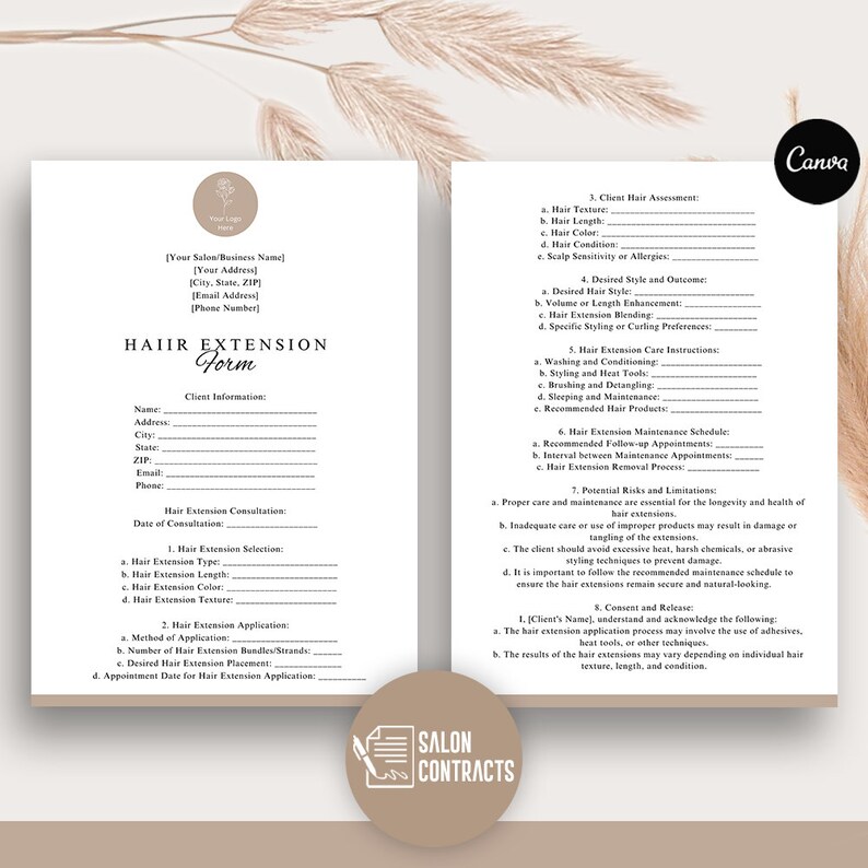 Hair Stylist Forms Editable Hair Consent Template Hair Extensions