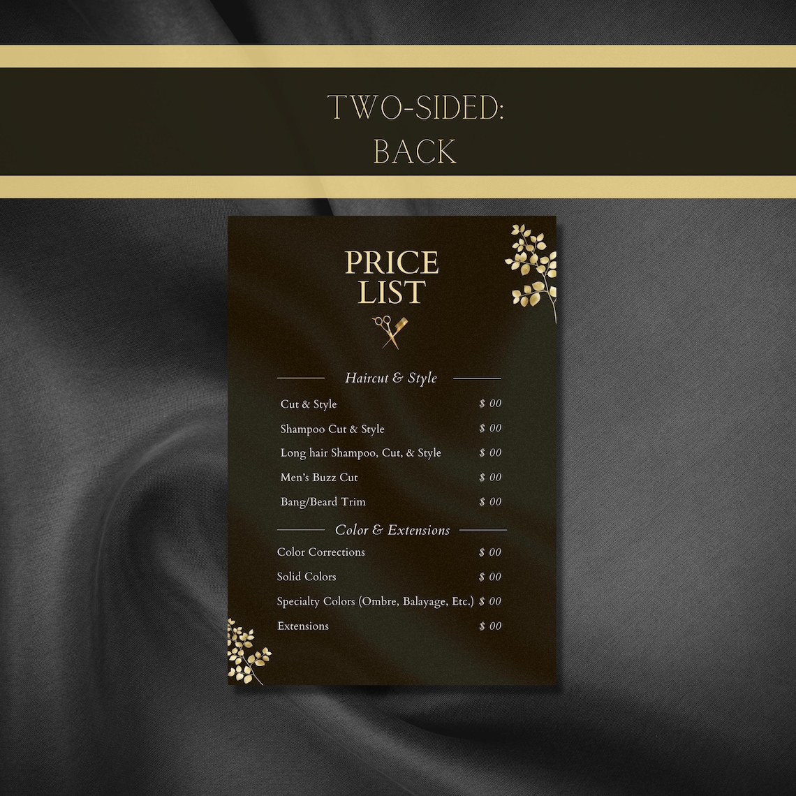 Custom Salon Price List Template Black Gold Glam Hairstylist