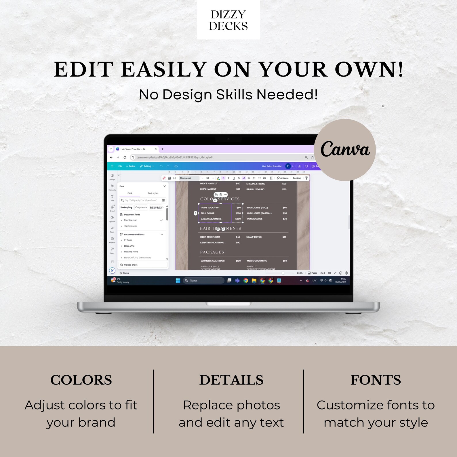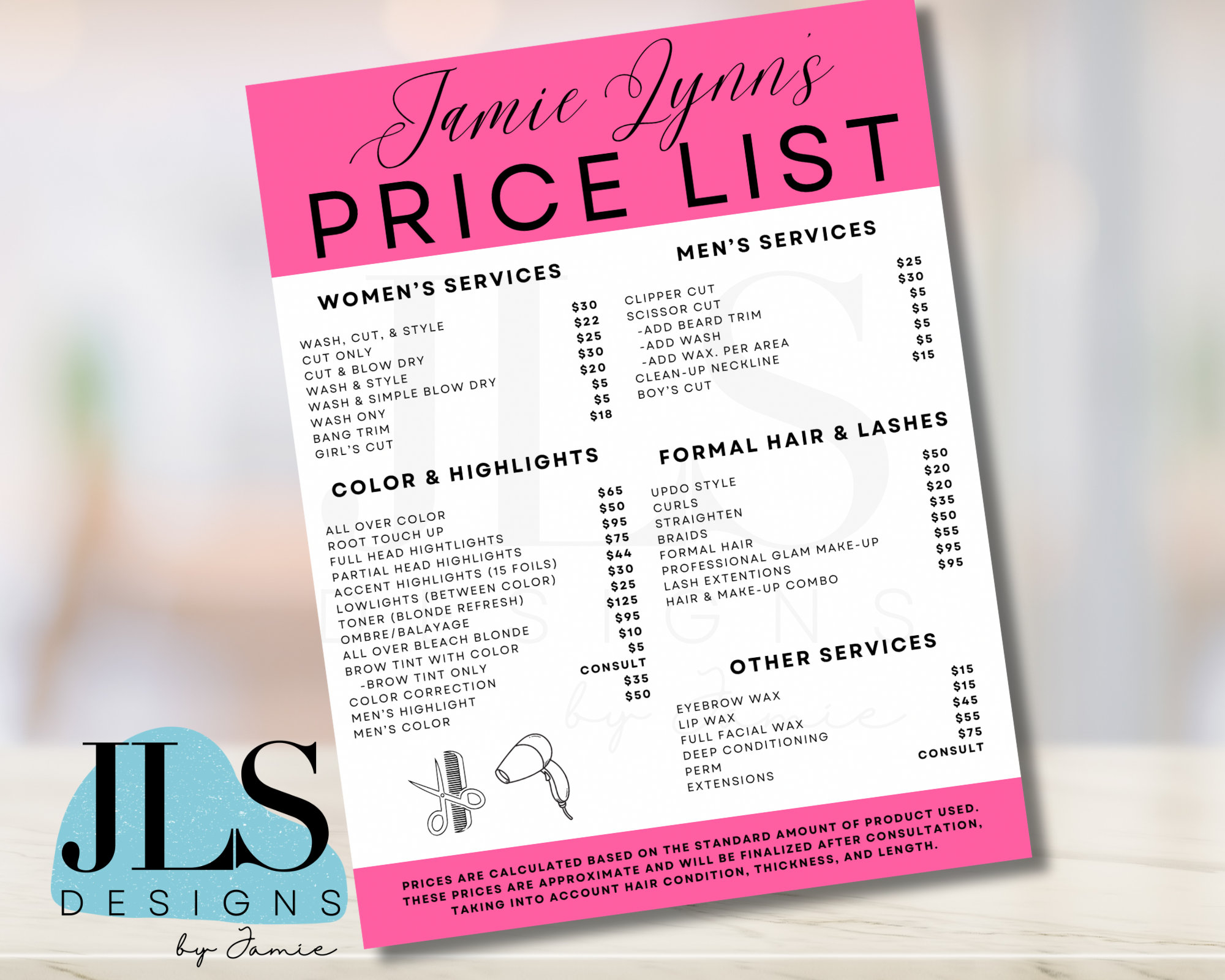 Editable Hair Salon Price List Template DIY Pricing Guide for
