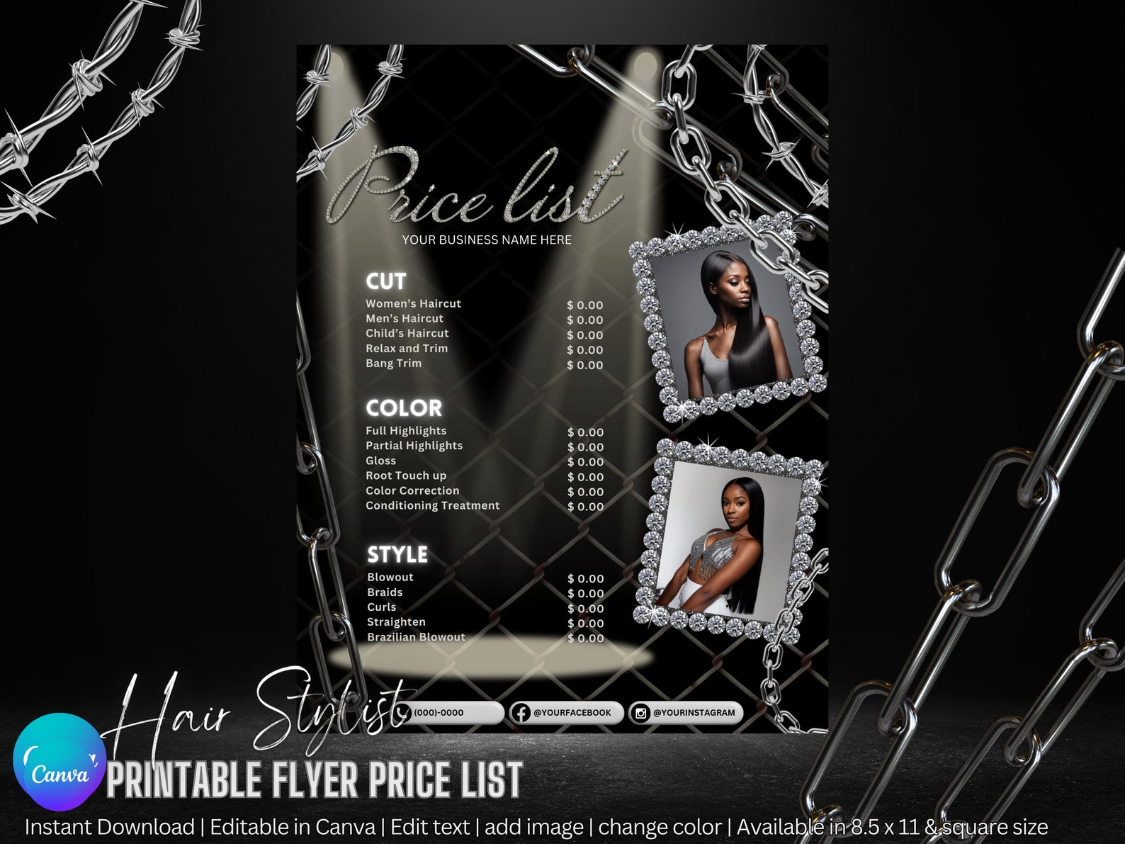 DIY Price List Template Canva Editable Hair Stylist Template Design