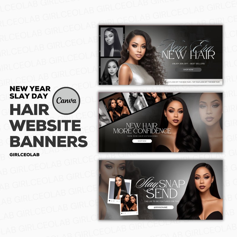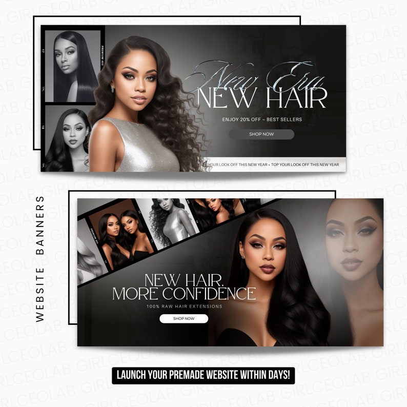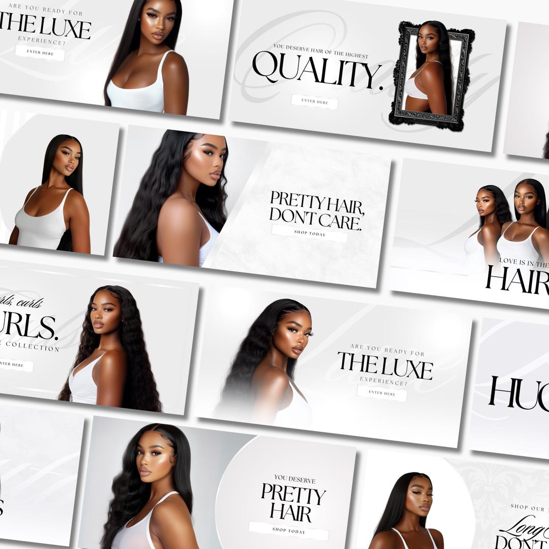 Luxury Hair Shopify Website Theme: Editable Canva Banners (instant