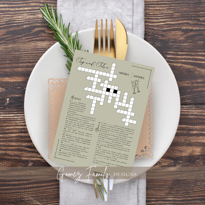 Sip and Solve Crossword Puzzle Template Wedding Game Idea Cocktail Hour