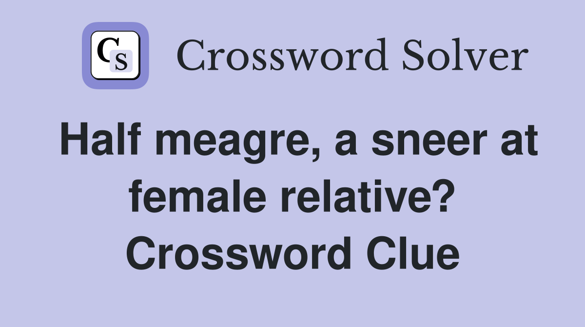 Half meagre a sneer at female relative? Crossword Clue Answers
