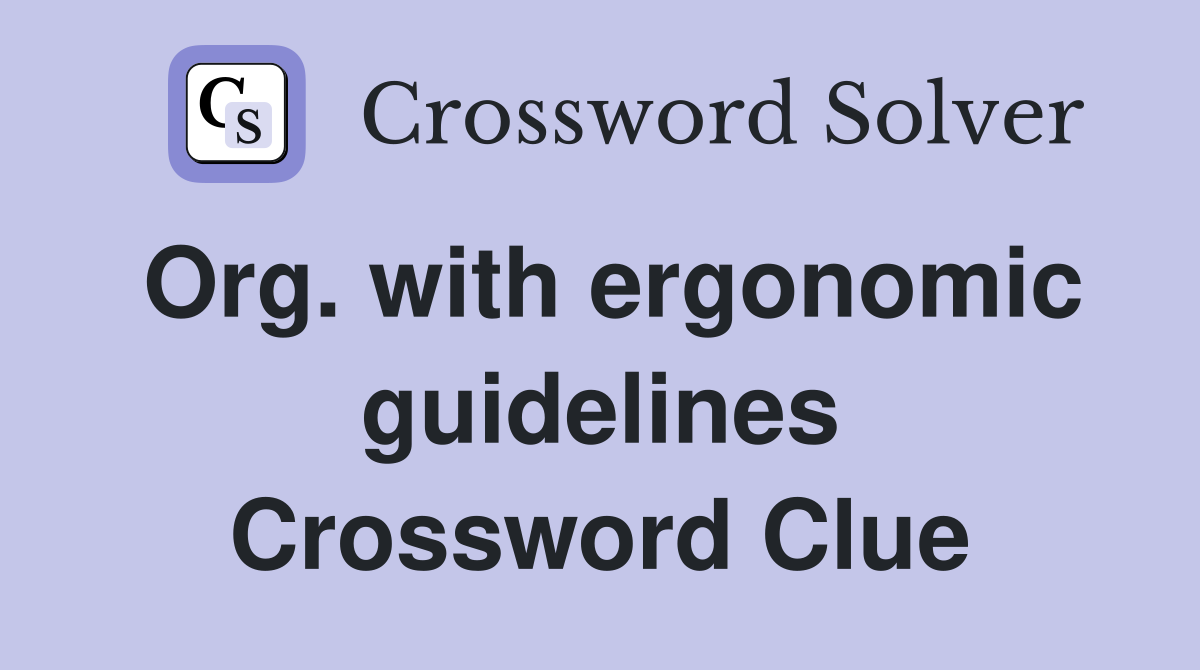 Org with ergonomic guidelines Crossword Clue Answers Crossword Solver