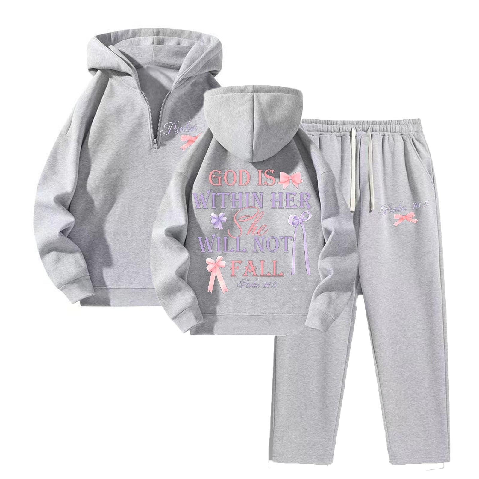 Fshinging Essentials Women #39 s Hoodie Bow Letter Graphic Half Zipper