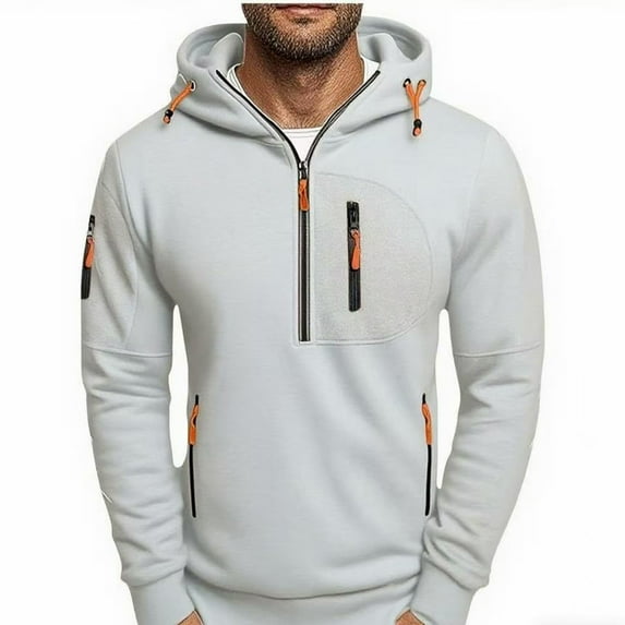 COSFO Half Zip Mens Sweatshirts Pullover Long Sleeve Hooded Gray Blouse