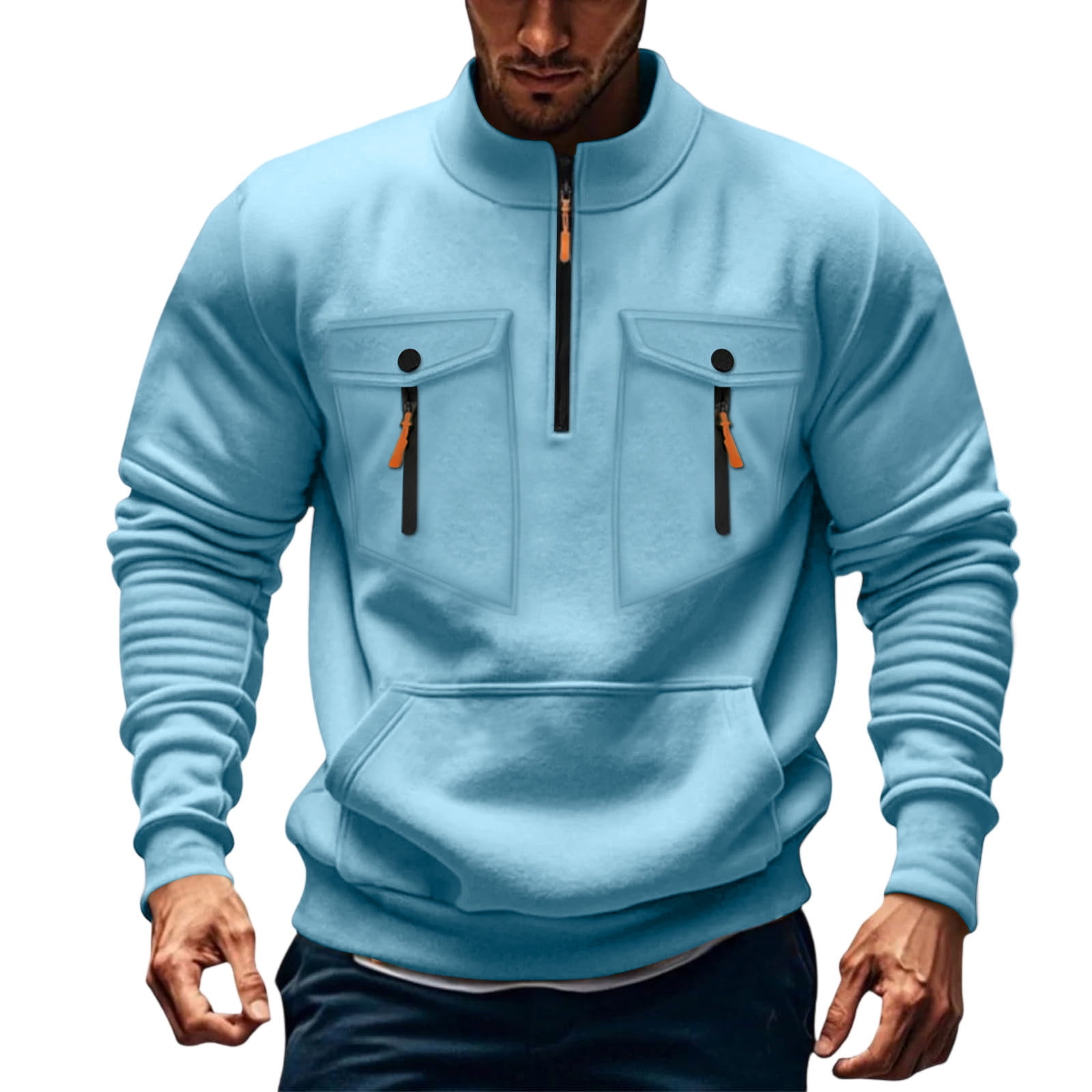 gbyLJF Men #39 s Half zipper Tp Solid Color Long Sleeve Stand up Collar