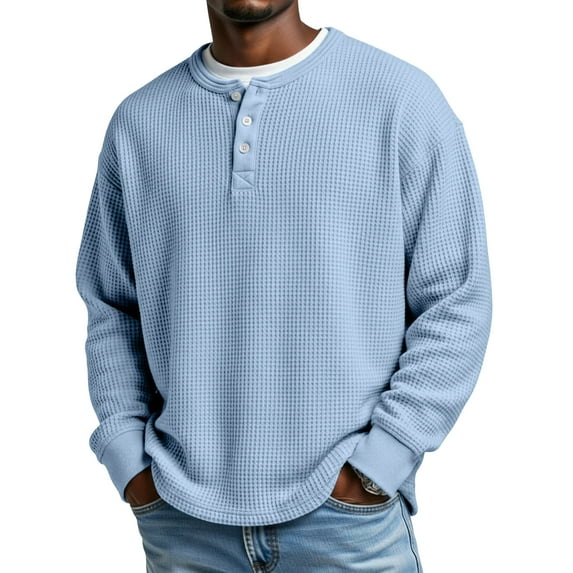 Half Zip Pullover Men Men #39 s Waffle Long Sleeve Shirts Button Tops