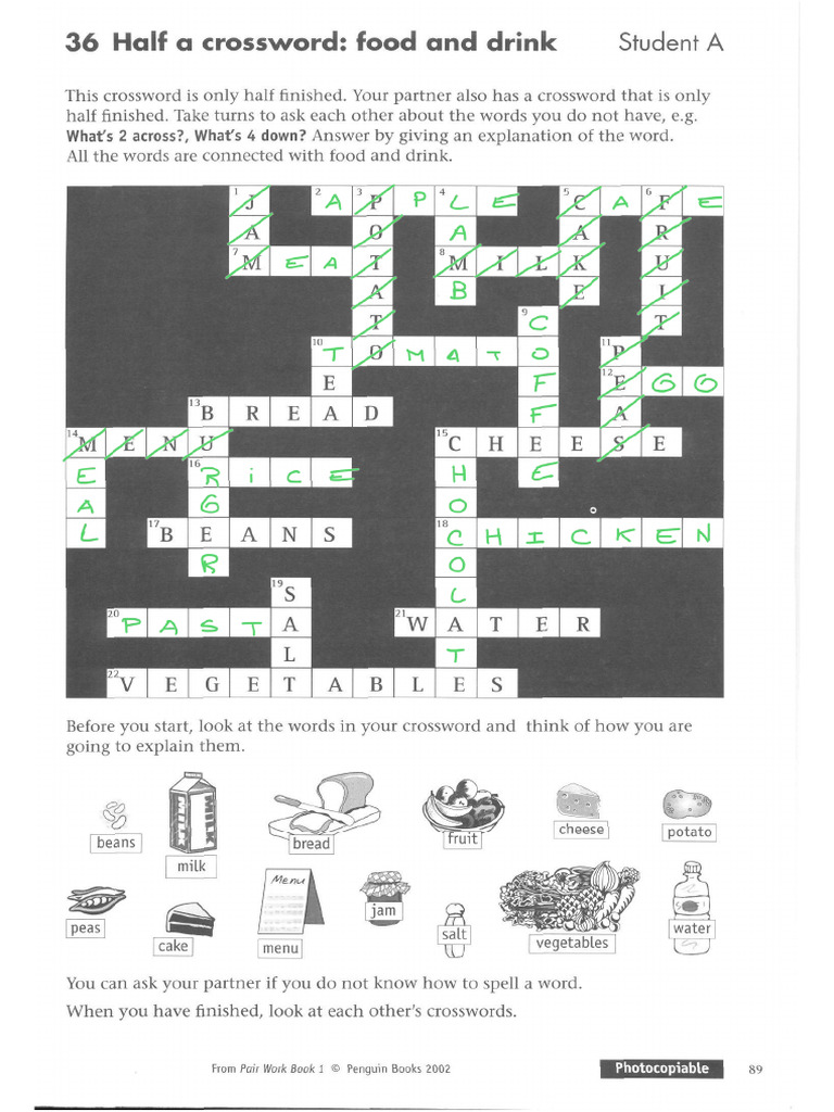 Half A Crossword Food and Drink Student A 30 1 PDF