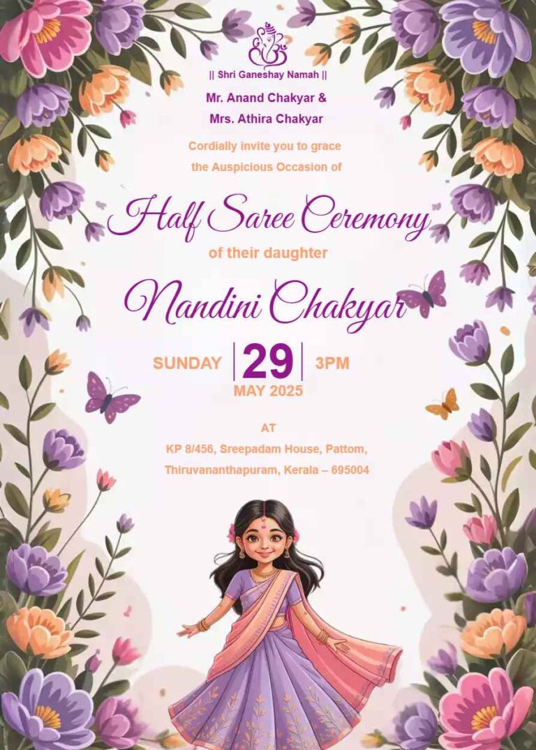 Half Saree Ceremony Invitation Card Template Editing Online All Top